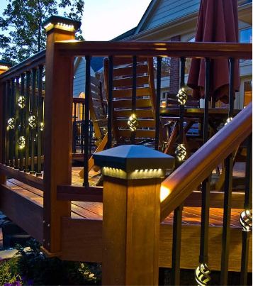 - Post lights – Our LED post cap lights give your deck polish and flair, with the ability to rotate a full 360 degrees. With flexibility and versatility, you have complete control over what is and isn’t illuminated. We also offer a solar post. option.