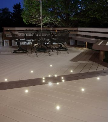 - Recessed lights – Our recessed deck dots can be walked on without damaging, fading, or breaking. You can install them flush with the floor.